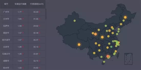 在“滴滴交通信息”平台的基础上,配合上滴滴的大数据挖掘能力,滴滴还推出了首份全国重点城市交通运行报告。该报告基于滴滴出行平台海量起终点、轨迹数据等出行数据,发挥滴滴大数据行业优势,采用业界通行的交通运行指数,从微观道路到宏观区域,客观细致精准的反应城市交通运行状况,分析日常出行的演化趋势。