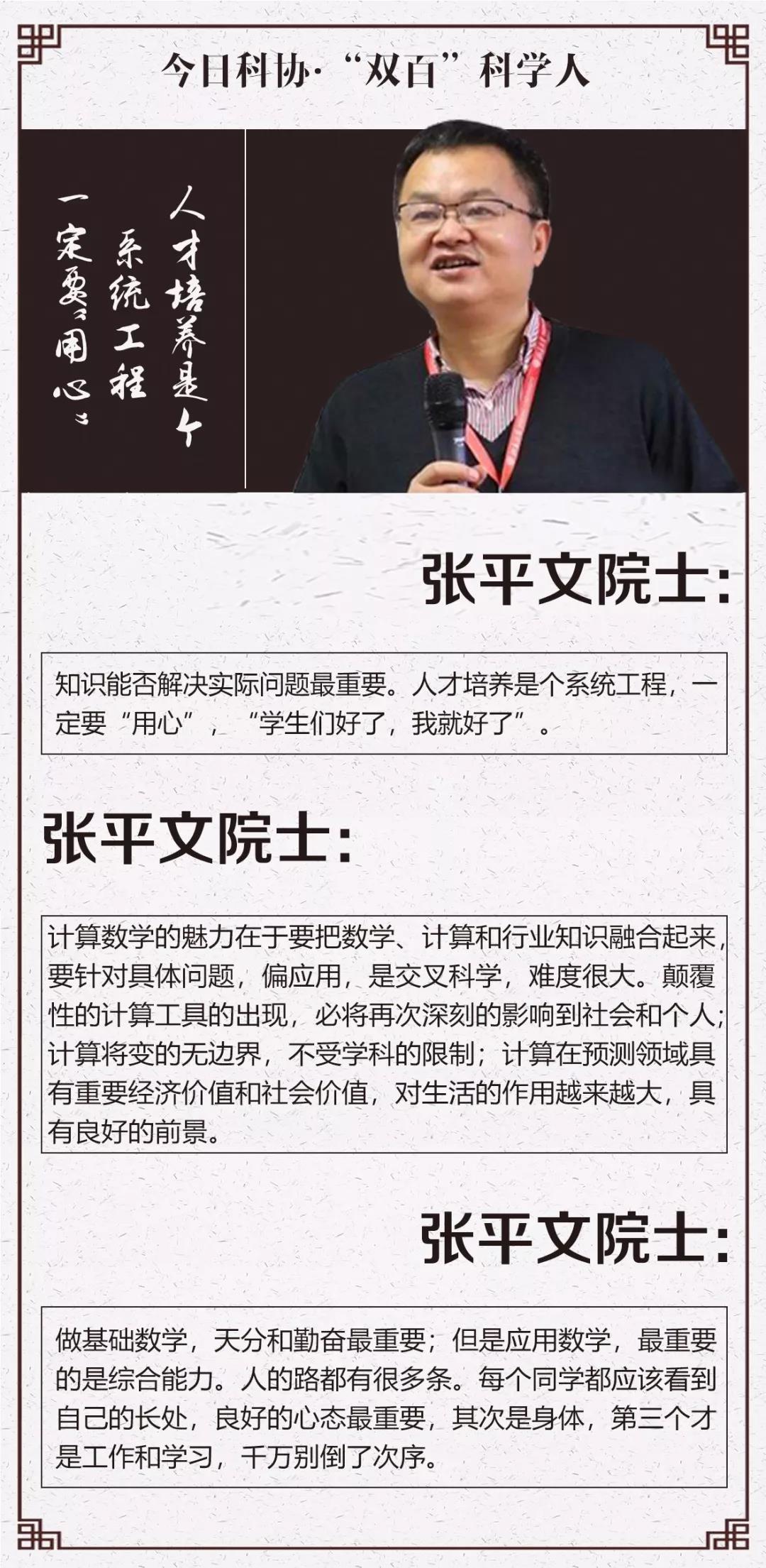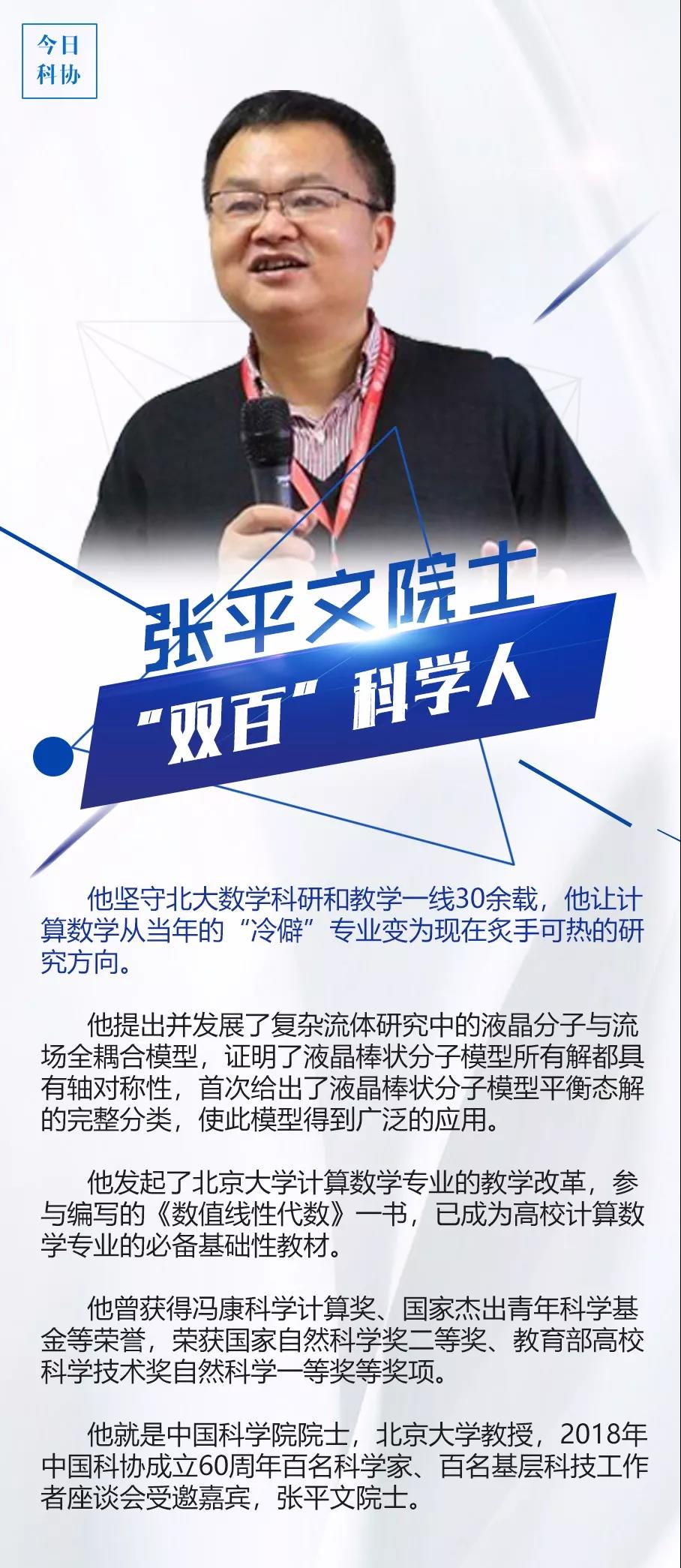 张平文院士在中国科学技术协会成立60周年百名科学家、百名基层科技工作者座谈会上
