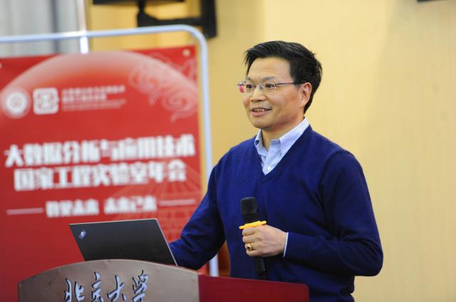 张平文院士致辞,并作实验室年度总结与规划报告。他指出实验室要以服务国家战略和经济主战场为重要使命,开展有组织的科研活动,以原创算法为核心竞争力,积极探索大数据学术创新链的发展。在过去的几年里,实验室在科学研究、人才培养、应用落地等诸多方面都取得了丰硕的成果,尤其是数字生态指数、数字化转型、分子动力学、科技抗疫、通用数值计算软件、精准气象预报、分布式深度学习系统、知识图谱、可视化、中医药大数据等科研团队率先获得落地发展。未来,实验室将进一步打造成为原创算法的策源地,成为新基建的践行者和卡脖子问题的破壁人,赋能学科发展,助力北大双一流建设。