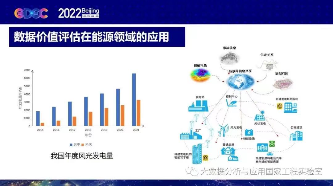 宋洁教授提出一方面,针对企业内部数据价值评估,需要将机理模型与数字化转型规律相融合,构造数据驱动模型进行数据价值分析;另一方面,在数据要素市场中,通过对市场激励方式、合作博弈建模求解分析市场均衡下的数据价值。宋洁教授介绍了国家工程实验室近年来所做数据价值研究的相关成果,对数据估值方法有较为全面的总结与认识,并介绍了数据价值评估在双碳能源领域应用的案例,并基于此为数据价值评估的未来趋势提出了看法。