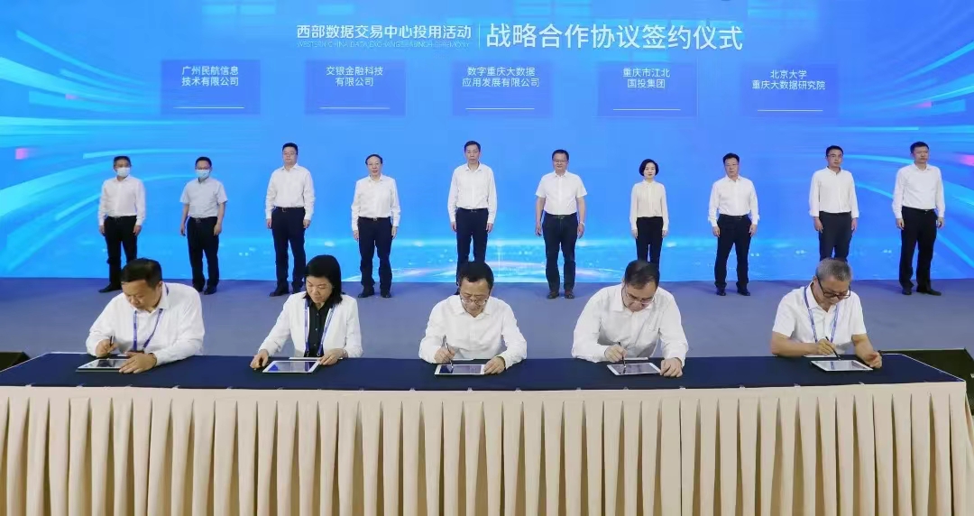 投用仪式上,西部数据交易中心的投资组建方数字重庆公司与广州民航信息技术有限公司、交银金融科技有限公司、重庆市江北区国有资本运营管理集团有限公司、北京大学重庆大数据研究院现场签订战略合作协议,为打破数据孤岛,构建数据经济生态系,促进数据要素流通发展迈出关键一步。