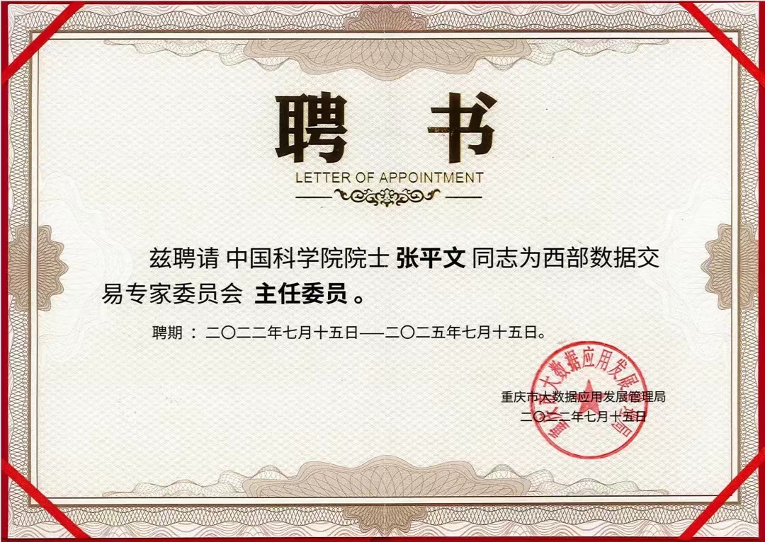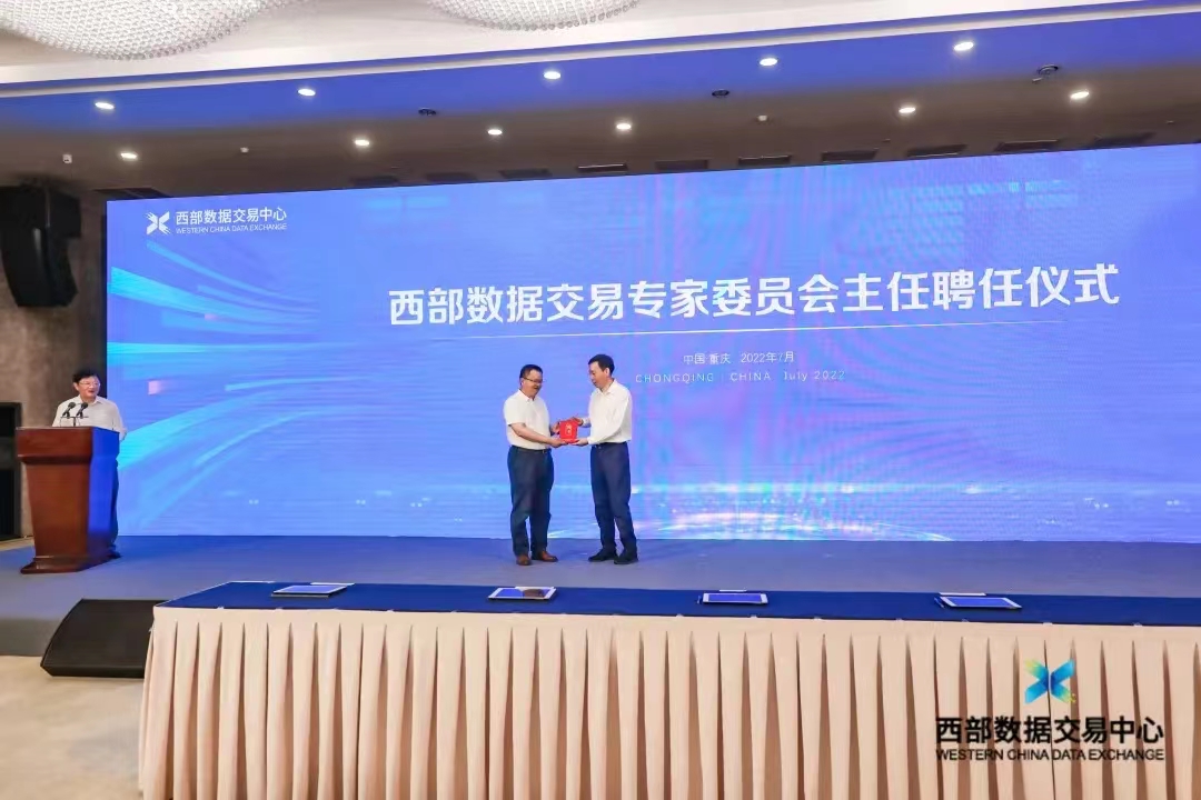 市委常委、副市长陈鸣波出席投用仪式,并为中国科学院院士、北京大学副校长张平文颁发西部数据交易专家委员会主任聘书。