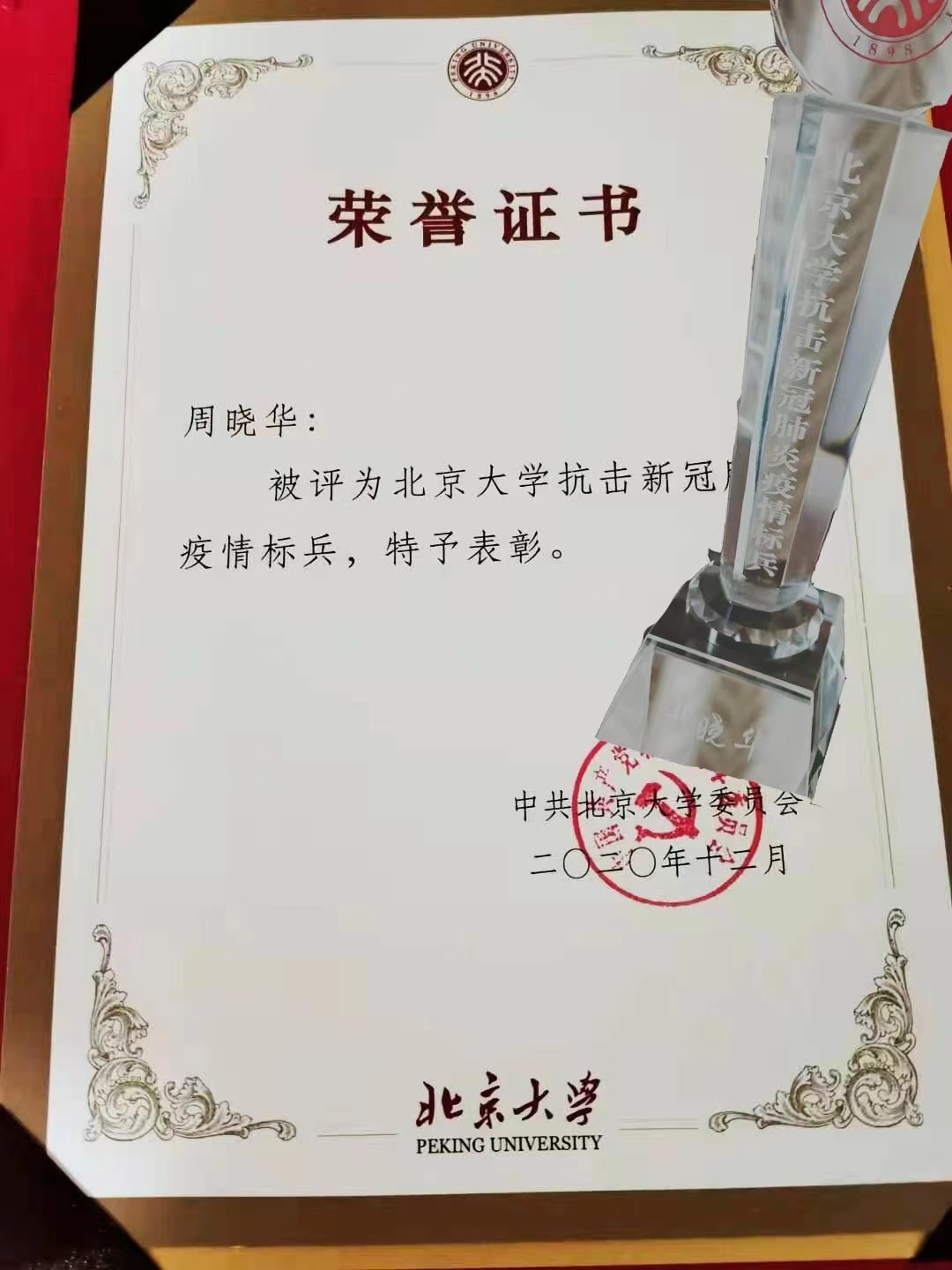 北京大学抗击新冠肺炎疫情标兵荣誉证书