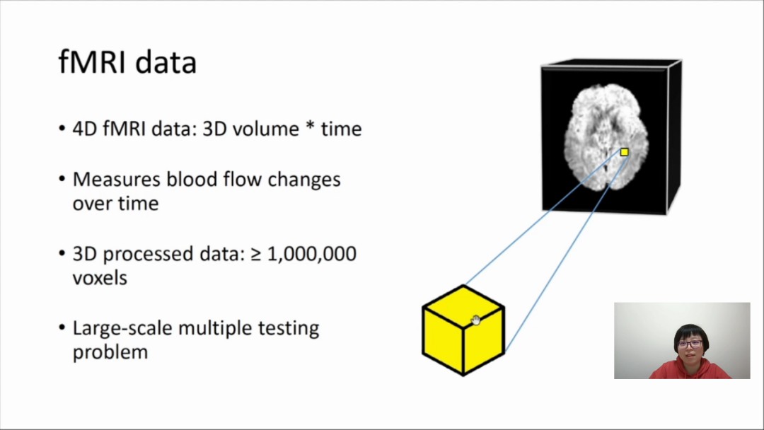 陈煦在报告《Improving cluster inference in neuroimaging data analysis using closed testing procedure》中讲到,经典的聚类分析在近年已经逐渐成为脑科学数据分析的标准方法。但是,该方法包含着一些众所周知的问题:可能导致过高的整体型I类错误,以及通常有着较低的空间特异性而无法很好的定位反应区域。对此,可考虑使用封闭检定法,该方法已被理论证明是控制整体型I类错误的最优方法,但对脑科学相关的大规模多重检验问题面临着巨大的运算量。为此,陈煦构建了相关的解决策略,并在实际应用中实现了多个线性和近乎线性时间复杂度的快捷算法。
