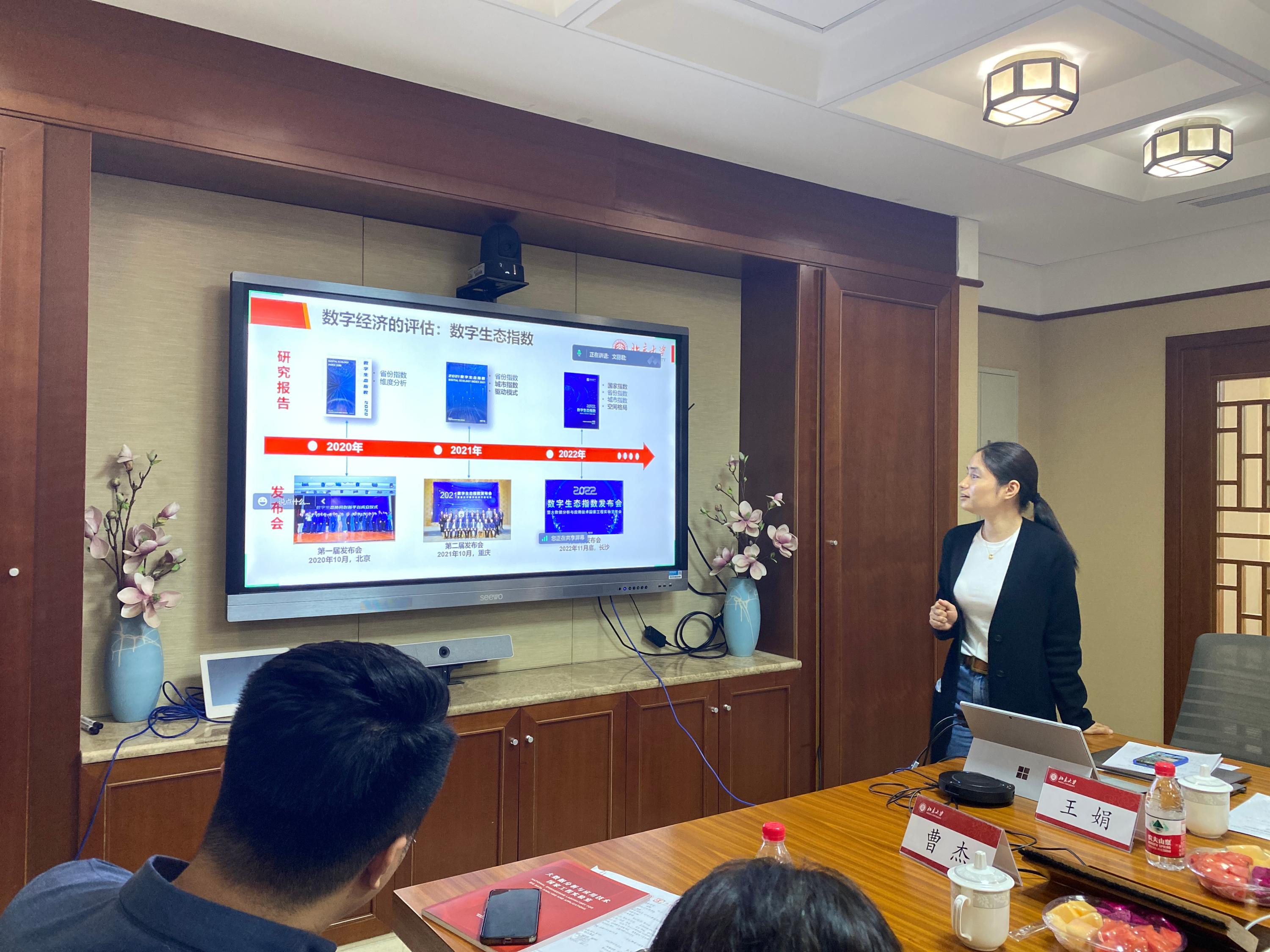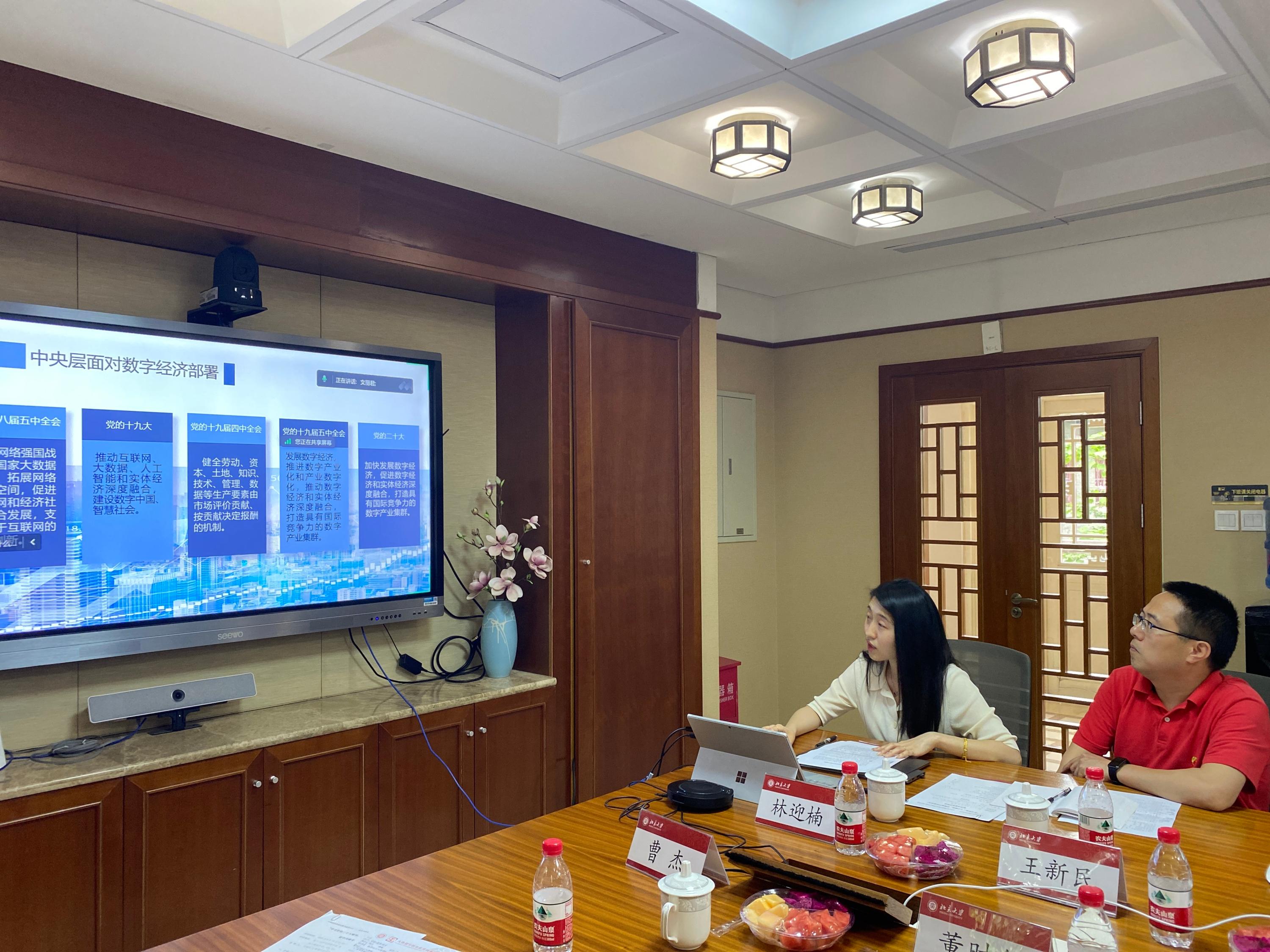 曹文忠副总裁在致辞中表示,在北大建校125周年之际,参观主题展览非常受教育。北大和新华社都有红色的基因,都承担着在各自领域成为“全球一流”的历史使命。中经社作为国家级经济信息服务旗舰,已初步形成“5-2-1”的业务布局。面对新形势、新要求,中经社整合自身智库经济研究、技术研发、数据分析等核心资源,成立数字经济研究中心,打造对内跨部门融合协同、对外合作联动的开放式业务平台。我国数字经济高质量发展的战略机遇期已经到来,数字技术与实体经济的深度融合必将迸发更大活力。曹文忠副总裁表示,希望通过此次联学共建活动,国家工程实验室和中经社能深入合作,破解难题、赋能发展,让“数字中国”落地生根、开花结果,做数字经济发展的“智囊团”,为国家数字经济领域贡献力量。