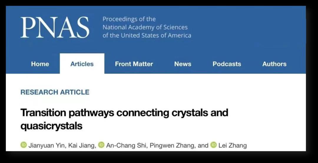 2021年12月,北京大学北京国际数学研究中心张磊副教授、数学科学学院张平文院士与合作者在美国科学院院报(Proceedings of the National Academy of the Sciences of the United States of America)在线发表题为Transition pathways connecting crystals and quasicrystals的研究论文。该工作通过数值计算得到了晶体和准晶之间相变的临界核和转移路径,揭示了准晶的成核过程。