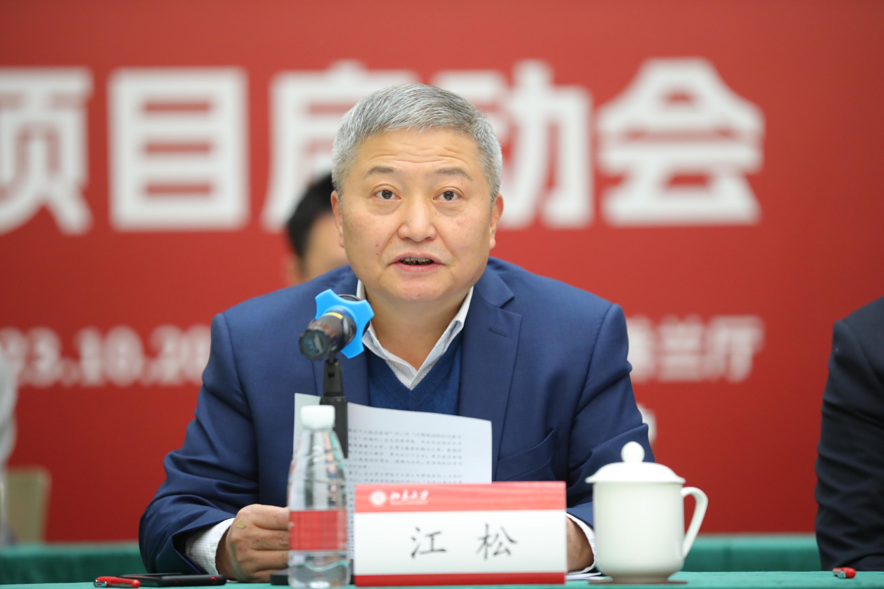 2023年10月20日,国家自然科学基金基础科学中心 “科学计算与机器学习”项目启动会在北京大学数学科学学院智华楼善兰厅隆重举行。国家自然科学基金委员会党组成员、副主任江松院士,数学物理科学部董国轩常务副主任,数学物理科学部数学科学处赵桂萍处长,中国科协副主席、中国科学院数学与系统科学研究院袁亚湘院士,中国科学院应用数学研究所马志明院士,山东大学泰山学堂院长、数学与交叉科学研究中心主任彭实戈院士,南开大学陈省身数学研究所龙以明院士、张伟平院士,上海科技大学副校长席南华院士,中国科学院数学与系统科学研究院周向宇院士,复旦大学、广东以色列理工学院院长龚新高院士,浙江大学数学高等研究院阮勇斌院士,香港中文大学(深圳)副校长罗智泉院士,武汉大学校长、党委副书记,北京大学讲席教授张平文院士,北京大学党委常委、副校长张锦院士,北京大学数学科学学院鄂维南院士、文兰院士、陈松蹊院士,北京国际数学研究中心主任田刚院士等国家自然科学基金委领导、项目组成员、院士专家出席会议。会议由鄂维南院士主持。
