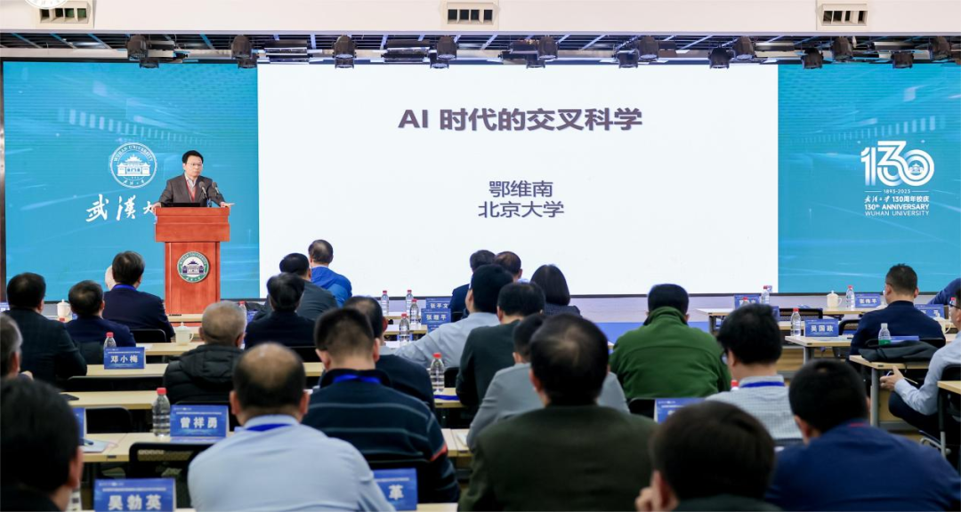 11月18日下午,中国科学院院士,北京大学讲席教授,大数据分析与应用技术国家工程实验室主任,北京大学国际机器学习研究中心主任,北京科学智能研究院院长,北京大数据研究院院长鄂维南院士作客武汉大学交叉学科论坛第三期,带来题为《AI时代的交叉科学》的主题报告。论坛由武汉大学前沿交叉学科研究院院长周翔院士主持。中国科学院院士,武汉大学校长、党委副书记,北京大学博雅讲席教授,大数据分析与应用技术国家工程实验室主任张平文院士为鄂维南院士颁授武汉大学交叉学科论坛纪念牌。