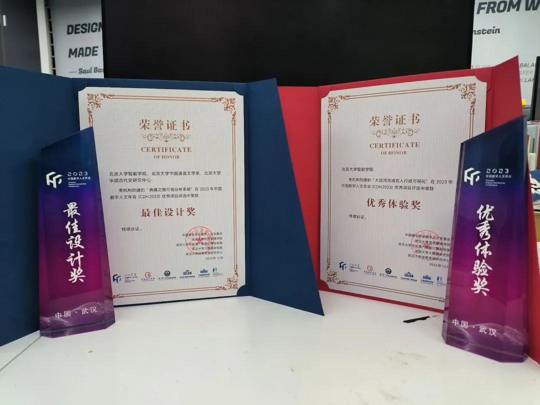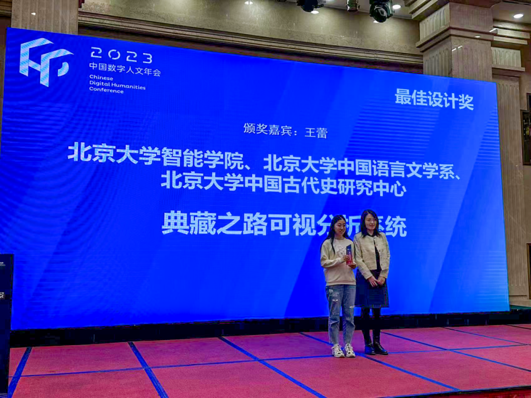 2023年12月9日,第五届中国数字人文年会“数实共生:预见数字人文未来图景”在武汉召开。在本次年会的项目征集中,由北京大学智能学院研究员、长聘副教授,大数据分析与应用技术国家工程实验室常务副主任袁晓如研究员团队和北京大学中文系杨海峥教授团队合作完成的《典藏之路》可视分析系统项目获“最佳设计奖”。由袁晓如研究员团队完成的《大运河流域名人行迹》可视化项目获“优秀体验奖”。