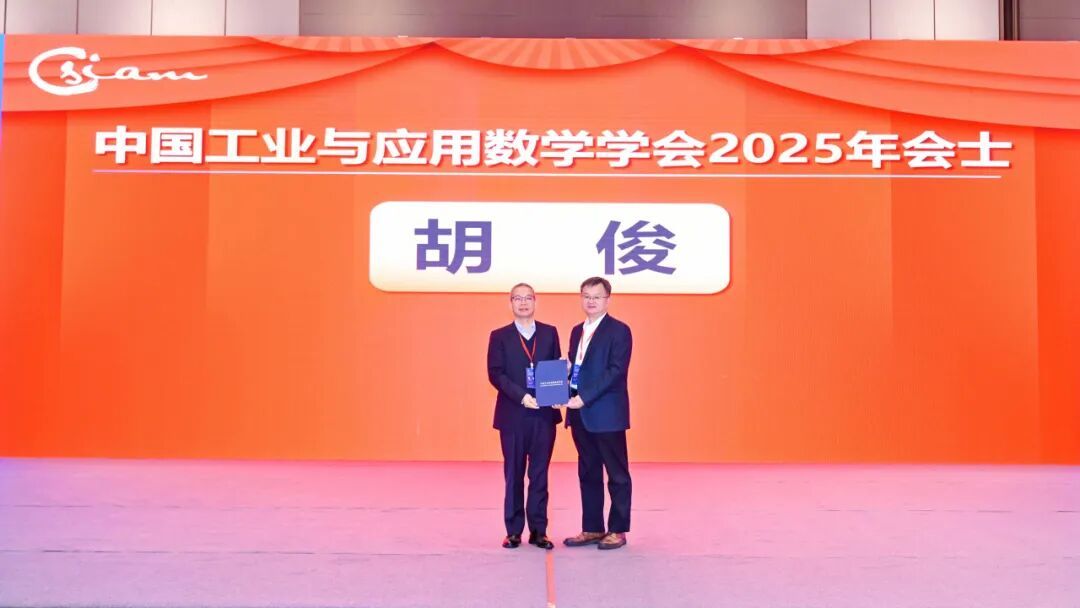 张平文院士为胡俊教授颁发2025年CSIAM会士证书