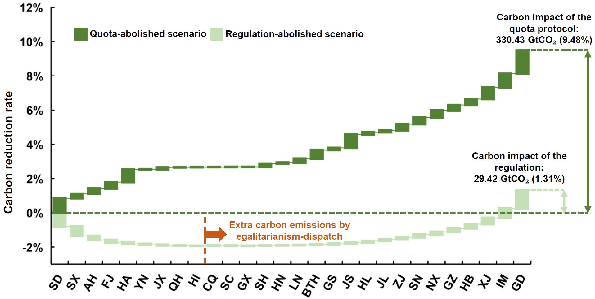 该研究表明,我国不同省级电力系统制度变迁的碳减排潜力存在巨大差异,其中关键影响因素之一是该地区发电资源的负荷率;同时,发电碳排放强度以及不同主体间市场份额的差异也是影响碳减排潜力的重要因素。