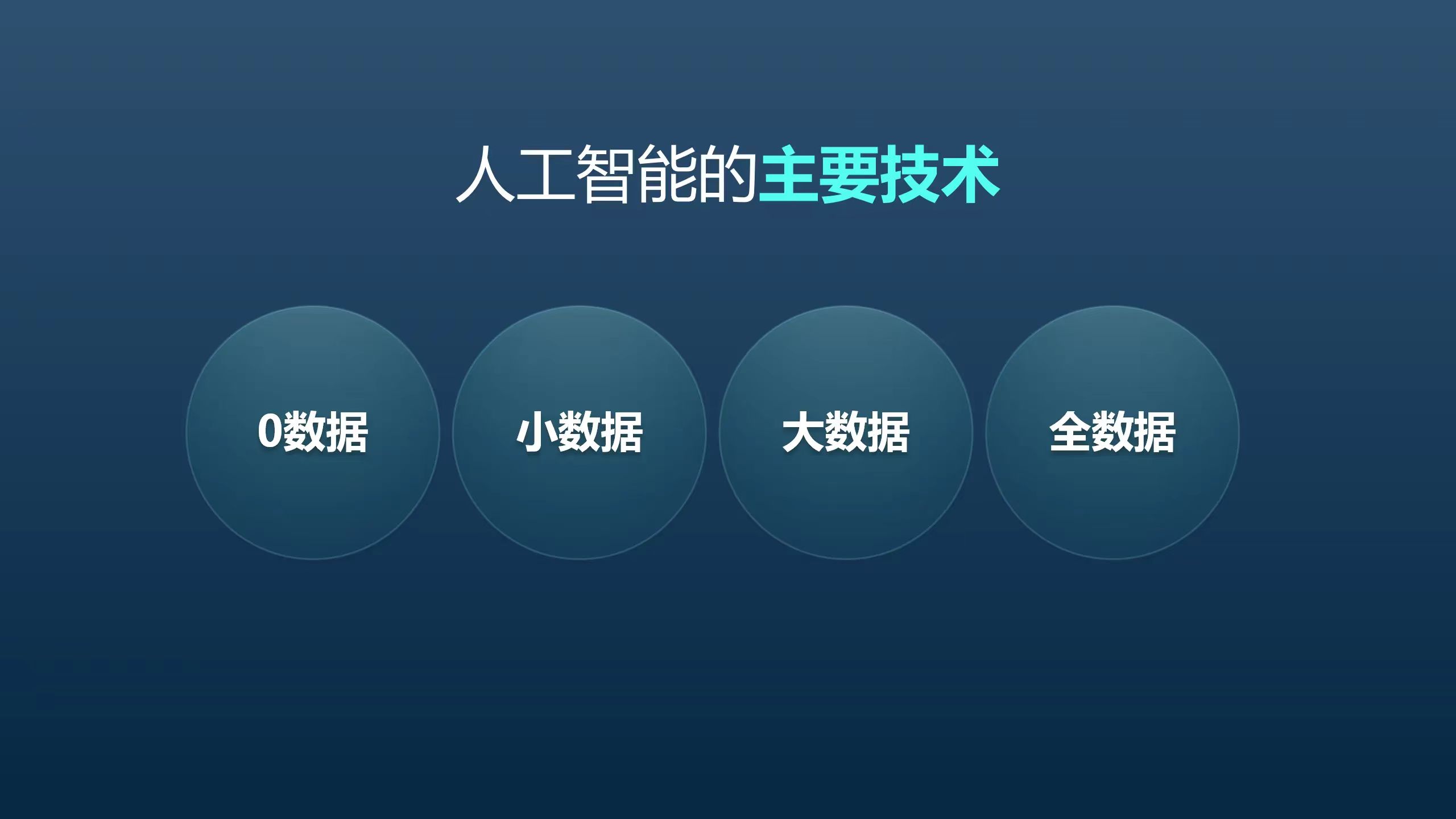 由于时间关系,我从数据的角度来介绍人工智能的主要技术,包括0数据、小数据、大数据、全数据。