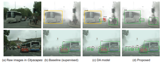 ▲从Cityscapes到带雾Cityscapes数据集的适应性定性结果