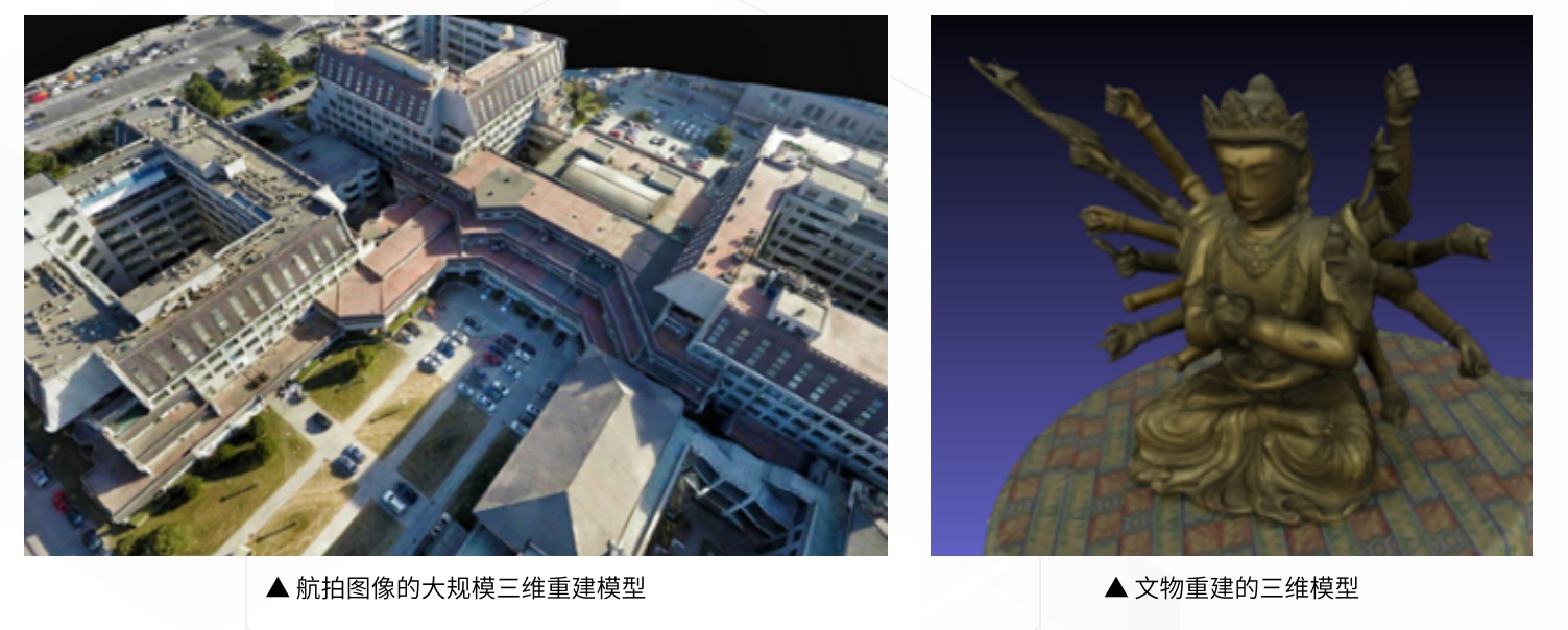 基于分布式架构的大规模三维重建:使用基于图像和视频的三维重建技术进行针对3D模型的精细重建以及最新的分布式架构针对大规模城市场景的快速三维重建,自主研制了二三维重建系统i23D,系统包括从数据采集到场景处理组织存储显示的全流程技术体系。系统工具被用于多个博物文物和智慧城市的三维场景快速重建中,并提供在线的三维场景重建服务。