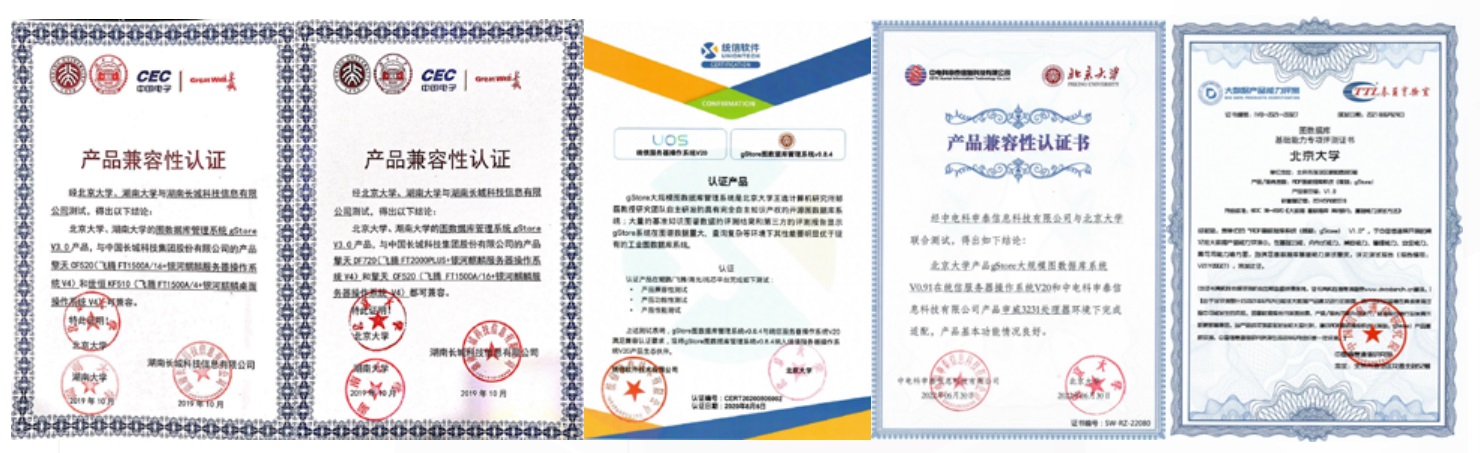 核心产品gStore是由研发团队研发的面向RDF知识图谱的开源图数据库系统。邹磊教授及其团队在国家自然科学基金重点项目,科技部重点研发计划,军委科技委国防创新特区项目的持续资助下,在注重学术创新的同时,坚持自主研发和工程系统研发,历经十余年的努力,已经形成了面向百亿三元组规模的高效图数据库系统,代码完全自主可控,拥有“论文-软件著作权-专利”完整自主知识产权体系,并于2018年2月获得教育部自然科学二等奖(“大规模图结构数据管理”)。gStore系统的开源版本近一年以来被下载超过一万次。目前gStore系统目前已经完成国产自主可控软硬件适配工作,获得的适配证明表明gStore支持麒麟、UOS操作系统,支持飞腾FT-1500, FT2000+、鲲鹏、海光、兆芯申威等国产处理器。2021年6月,gStore图数据库通过中国信通院图数据库基础能力专项评测。2022年8月,发布gStore 1.0版本。