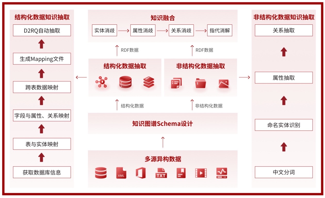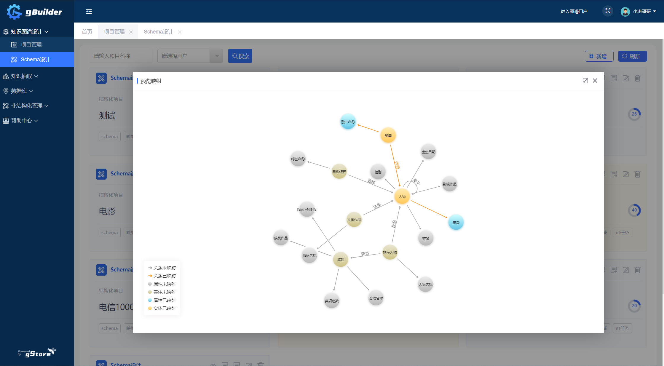 gBuilder是知识图谱自动化构建平台,解决知识图谱生命周期中一个基础且重难点问题即如何自动化构建知识图谱。通过结合NLP技术、机器学习、人工智能、知识图谱、图数据库等众多技术,打造的一个针对结构化数据和非结构化数据的知识图谱自动化构建平台,实现数据向知识的转化。提供schema可视化设计,通过拖拽的方式进行schema设计,无需编写代码。通过映射方式直连关系型数据库,结构化数据无损转化为RDF三元组数据。非结构化数据主要通过深度学习模型流水线构造的方式来对非结构化数据的实体、属性关系进行学习与识别, 实现数据和知识的自动化转化。