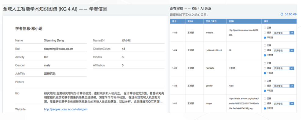 以OpenBase为例,它是一个基于众包的知识构建与数据集成平台,通过人工和自动化相结合的方式解决图谱构建、标注和迭代的难题。用户可以将结构化的三元组数据上传到平台,使得具有领域知识的其他用户可以对三元组进行审核,最终由验收者进行验收,确保图谱数据更准确。任意用户可浏览已上传的图谱数据。